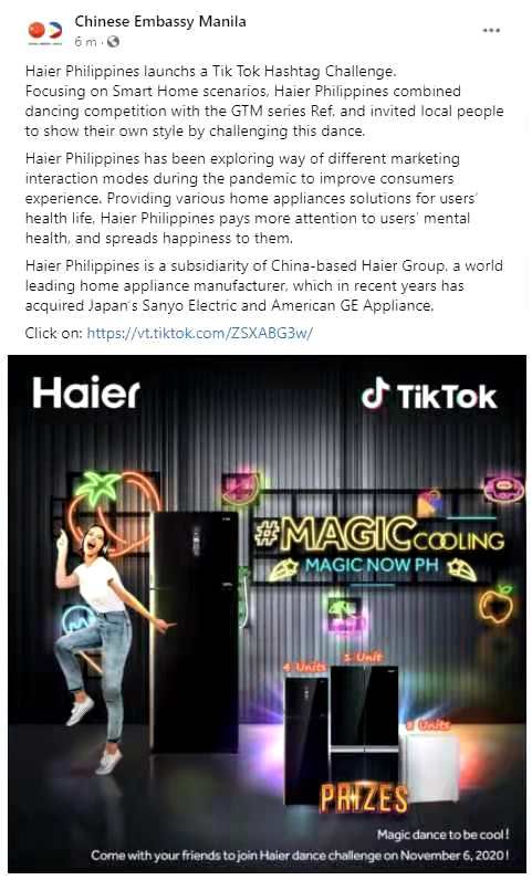 同时,活动也扩散到Instagram、Facebook等多个平台,吸引了20+当地网红达人参加。中国驻菲律宾大使馆更是在Facebook上亲身下场为活动“打Call”,泰国中国商会也参与助力,进一步扩大了活动的影响力。短短6天时间,活动吸引了超过70万用户,上传近200万个参与小视频,在东南亚全网引爆。