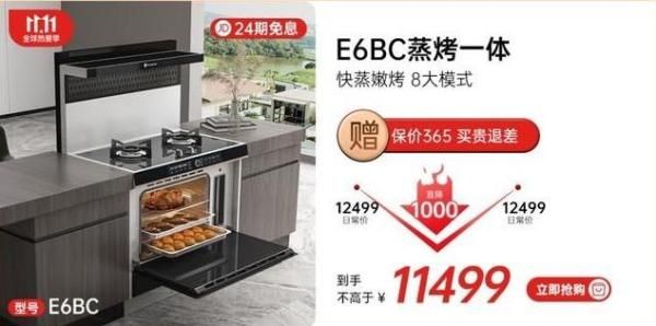 在这狂欢时刻,当然少不了火星人E6BC蒸烤一体集成灶带来的优惠,11月11日购买火星人E6BC蒸烤一体集成灶,直降1000元,到手价不高于11499元,抢购时间仅限11月11日0点-11月12日0点,还能享受保价365天、买贵退差价权利,心动就行动吧!错过今天要等一年啦!