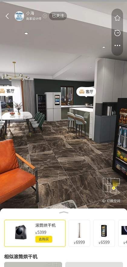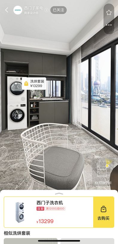 这是继3D场景购物技术大规模应用于家装家居等行业后,在大家电行业得大规模落地实践。依托躺平设计家提供的3D样板间、实景复刻技术,家电品牌商能够以低成本、快捷的方式实现对线下场景的高仿真复刻,在线上快速搭建出自己的3D虚拟品牌展厅,包括冰箱、洗衣机、空调、电视、厨房大电器、热水器等6大家用电器品类,消费者躺在家里就能体验实景逛街,只需动动手指,就能将自己喜欢的家电产品“装进”家中,看到真实布置效果。