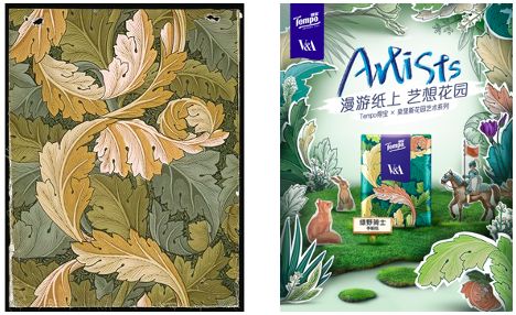 10月下旬,Tempo得宝以 “漫游纸上,艺想花园” 为主题,发布文化艺术IP产品——莫里斯花园艺术系列纸巾,与V&A博物馆强强联手,推出三款艺术设计。同时联合品牌代言人吴亦凡,共同呈现精致古典艺术之作。
