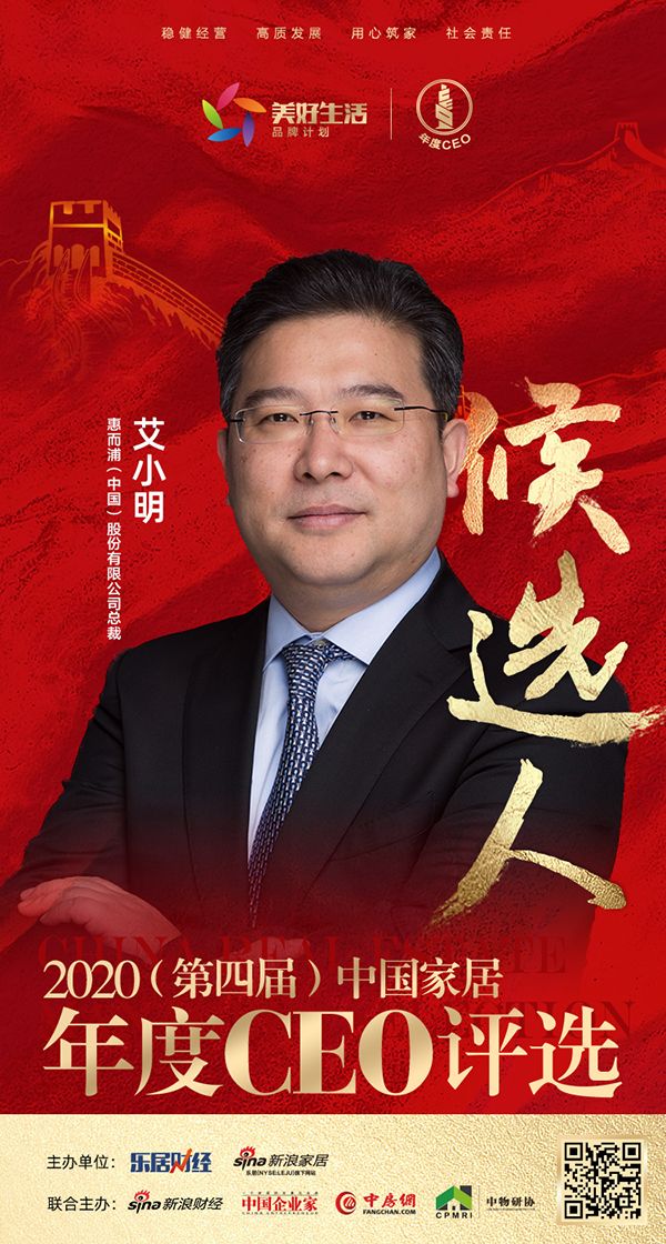 新浪家居讯 由乐居财经、新浪家居主办,新浪财经、中国企业家、中房网、中物研协联合主办的“2020(第四届)中国家居年度CEO”候选人陆续亮相。11月14日,惠而浦(中国)股份有限公司总裁艾小明先生获提名,成为“2020中国家居年度CEO”候选人。