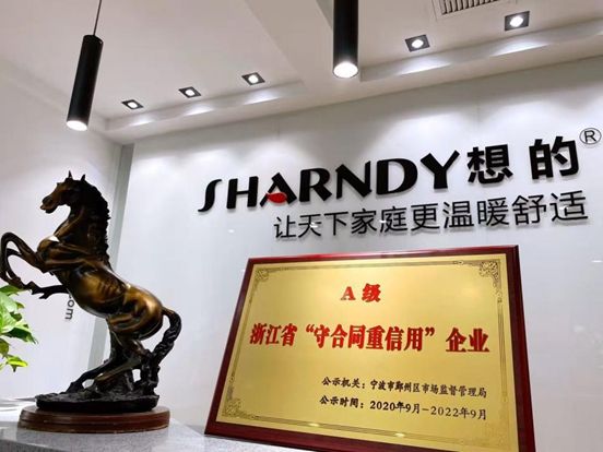 11月15日,从浙江省市场监督管理局获悉,宁波瑞狄安采暖科技有限公司(以下称“SHARNDY想的|瑞狄安”)凭借自身良好的信用体系建设、诚信守约形象,被评为2020年浙江省A级“守合同重信用”企业。