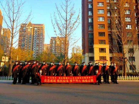 在天津,世茂服务多个项目已经进入疫情防控的战时状态,目前,世茂服务在天津所有在管项目均进行小区封闭管理,严格把守门岗,为了凝心聚力、抗击疫情,津北管理中心天津生态城秩序团队召开以“众志成城 抵抗疫情 携手同心 战疫必胜”为主题的抗疫动员会,会后全员在抗疫宣传条幅上亲笔签名并佩戴抗疫绶带,团队上下齐心协力,士气满满,誓言坚决为业主做好第一道守护墙。