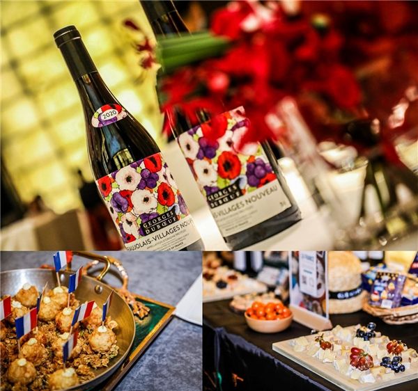 11月19日当晚,在中国法国工商会的号召下,众多法国知名企业代表团受邀出席博若莱新酒会,满堂法语、重聚寒暄、美妙歌声,品鉴美酒美食。