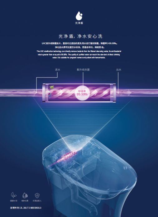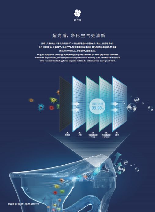 除此之外,T50A1还配备了“超光盾”专利技术,作为行业首创专利技术,能过滤、杀灭马桶内环境空气中的病菌。洗手间是个封闭空间,空气流通性差,而“超光盾”能很好的对马桶中的内环境进行杀菌,可以减少病菌的扩散,减少对日常生活的影响。