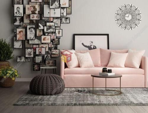 粉色的沙发,在层次感十足的黑白墙壁映衬下,夺人眼目。清新质朴,时尚简约,三两个简单设计便轻松营造出现代主义下的空间感。