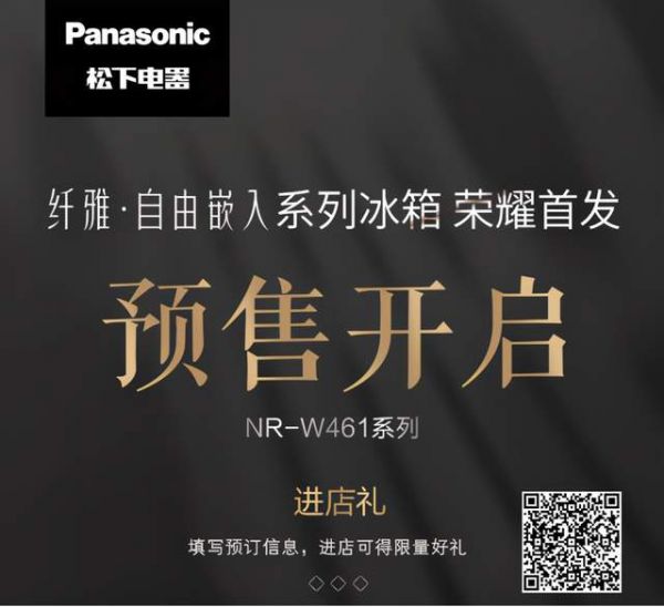 据了解,松下纤雅•自由嵌入NR-W461系列目前全国预售已开启,可在Panasonic松下冰箱微信公众号以及线下门店多渠道进行咨询或预定。也可直接扫描下方二维码进行预定