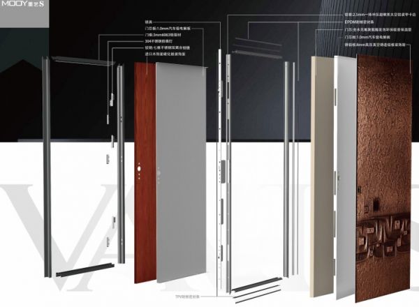 梵蒂斯装甲门采用严谨的结构设计,门框部分选用3.5mm超硬质合金铝门框,门框边缘采用3D圆角处理工艺,在门扇闭合处可以有效减少缝隙面积,进一步提高气密性,同时保持整体美观。门扇部分选用1.0mm高强度锌铁合金加强龙骨,全水无氟聚氨酯发泡门芯填充,起到隔热、隔音等作用,同时强化门扇结构,有效防止门扇下挂;装甲卡边则是选用2mm超硬质合金铝型材,将装甲系统与两边面板镶嵌固定,形成门扇,实现自由组装,随意拆卸,同时具有极强美观性;门扇气密条选用汽车级胶条,具有弹性好、耐氧化、抗腐蚀,不易开裂变型、寿命长等特点。内外饰面板则可以根据消费者需求选择满意的饰面板。