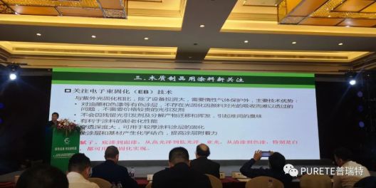 11月19日,全球饰面大会暨第九届装饰纸与饰面板定制家居产业链发展峰会在杭州召开。会上,普瑞特总经理付秋霞女士分享了饰面板涂饰新技术的应用,重点介绍了EB固化技术应用。