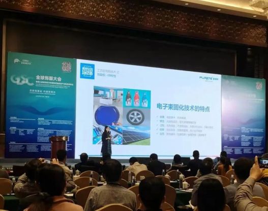 2020全球饰面板大会,付秋霞分享EB电子束技术的原理及应用。