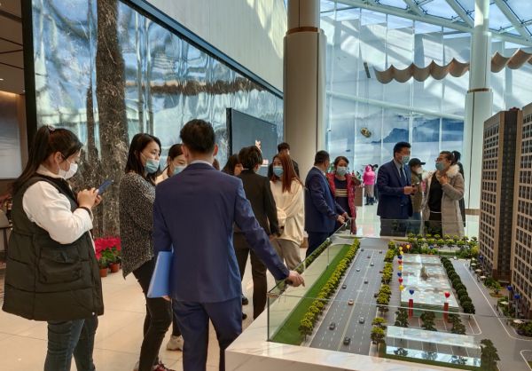 售楼处现场沙盘、户型等众人关注的内容都逐一呈现。每个细节都彰显着匠心和用心,从选材到铺装,从布局到展示都令人耳目一新。在置业顾问的讲解下,客户对项目和品牌有了更加深入的了解,对胜芳SOHO的品质和未来充满信心。