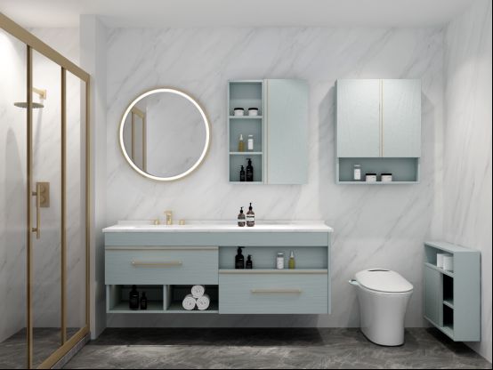 (将使用频率越高的生活物品放置在主柜+马桶柜+侧边柜各个空间,更方便拿取哦)
