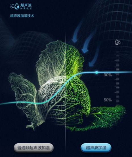 值得关注的是,该款冰箱搭载超声波加湿技术,通过主动监测库内食材状态,实现主动加湿保鲜。果蔬模式下间室湿度90%以上,同时搭载蓝光LED,模拟光合作用下的波长,使果蔬长久保持鲜活状态,防止养分流失。另外,在设置红酒珍藏模式,间室转为12°C恒温,约70%的湿度,可以更好的存放葡萄酒。