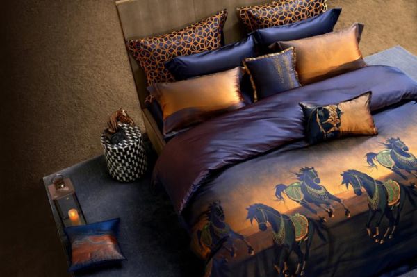 家宅可以豪,生活品质必须跟上。这次在1.8亿的别墅里出现的寐MINE产品均为超级总裁系列套件,虽属同一个系列,但在设计上有着突出个性与鲜明风格,其中出现在100多平方米的主卧套房的是寐MINE真丝色织提花多件套:追光·烈焰橙。由重磅真丝织就而成的面料,奢华可触,至臻丝滑且经久耐用。追光飞驰的骏马花型在真丝布料上生动呈现,恣意潇洒,气场十足。