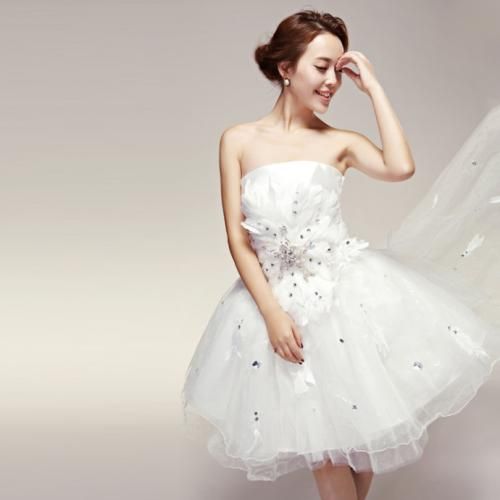 个子矮的朋友不能选择长拖尾婚纱,这种婚纱会让新娘显得更加矮小,可以选择短的婚纱,这样能提高新娘身高比例,给人一种更加可爱的感觉。