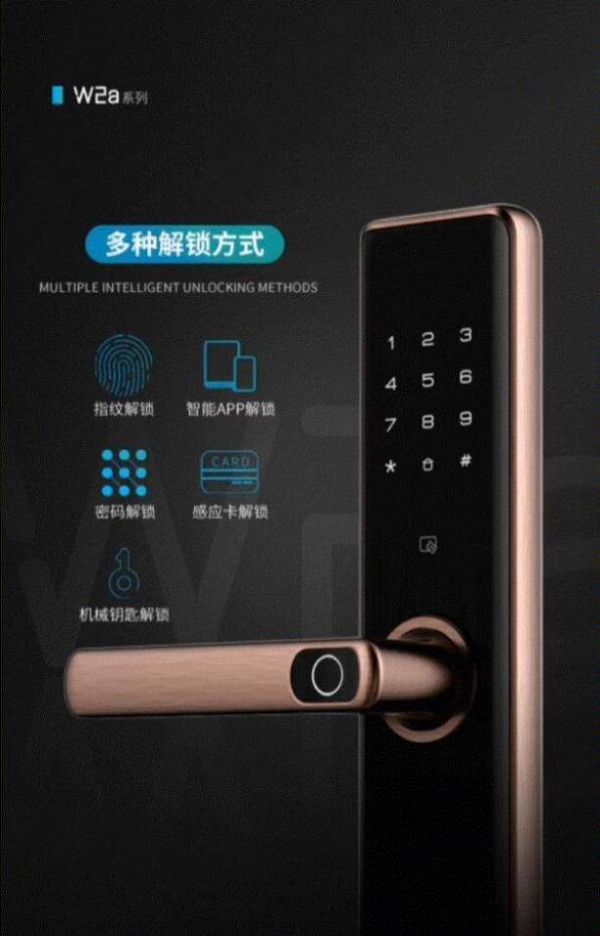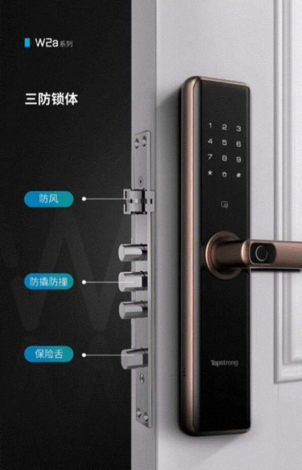 顶固W2a智能锁,具有指纹识别、密码开锁、智能APP解锁 、感应卡解锁、应急钥匙开启5大解锁方式,出门再也不用带钥匙,为生活减负,为家人带来高品质便捷生活体验。