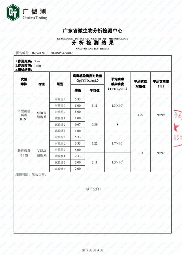 广东省微生物实验室的测试报告,也进一步验证了手指管家J81的实际清洁效果。根据测试报告,手指管家J81可在一分钟内杀灭99.9%的流感病毒(H1N1)、肠道病毒-71型(手足口病)以及其他的螨虫、病毒、有害细菌,有此背书,杀毒效果当然是可靠的。