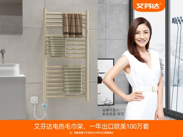 整架一体发热的技术,30分钟即达到恒温50℃,快速烘干;高效杀灭99.99%的霉菌,艾芬达以过硬的产品质量与良好的市场口碑,与多家世界500强企业建立了长期合作关系,产品销往60多个国家和地区,一年出口欧美100万套。在欧美,艾芬达无疑已经成为众多家庭的“硬通货”,并且电热毛巾架已不再局限于浴室,它在厨房、卧室、储藏室和地下室越来越流行,在减少湿度、湿气和霉菌的同时,提供更多的热量,让家庭更为温暖、洁净。
