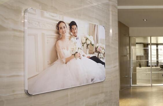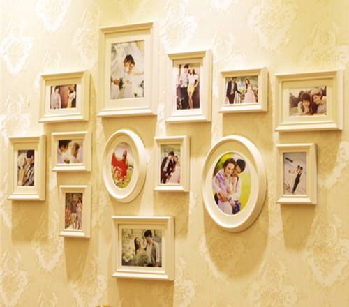 2、如果是那种比较小的婚纱照,那可以制作成一面照片墙,可以挂在客厅里面,按照大小不一的规则进行排列,自己看一下如何装饰好看,如果挂在客厅里面能够给人很温馨的感觉,客人来到家里之后也能第一眼看到婚纱照。