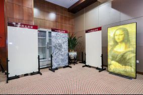 蒙娜丽莎3mm高强韧抛光岩板,具备断裂模数超80MPa的超强性,抗压强度大,不易变形,可广泛用于橱柜、衣柜、天花吊顶等家居的门板和面板、冰箱面板、背景墙、整体卫浴;与其他材料复合制成具有特殊材性的制品,用于多种用途;异于普通陶瓷的韧性,则适用于曲面外墙、隧道等异形墙面铺贴。超强韧性可满足多元切割,贴花艺术等精细加工也不在话下,同时3mm超薄高强韧抛光岩板实现了单面及双面抛光,平整性达到镜面效果,放置家中用来出门前“臭美”也是极佳的选择。远红外透光岩板是在全屋定制健康陶瓷板(砖)系统基础上,对原有第二代透光板进行的升级,透光度达2.65%,远红外辐射达0.879%,可实现抗菌功能助力健康家居,应用于家庭背景墙、瓷艺挂画等做装饰产品,是岩板在照明装饰领域的涉足,拓宽了岩板高定领域的版图,为照明设计提供更为丰富的材料。