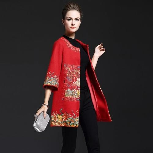 冬季非常适合穿毛呢,保暖效果好,然后里面搭配一件黑色毛衣,显得非常大气,再加上红色的毛呢外套,使得整个婚礼现场,不尴尬,不失礼。