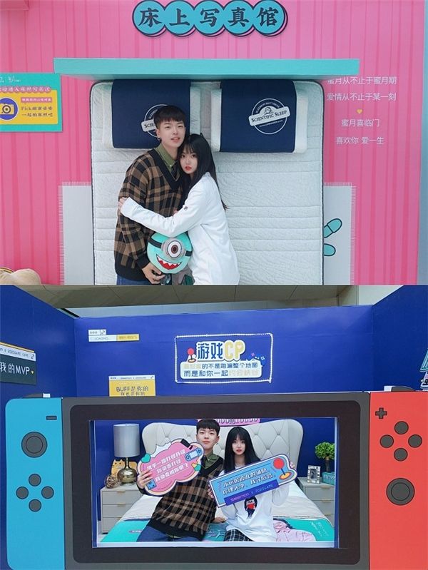 床上写真馆、萌宠cp馆、游戏cp馆、养生cp馆……各种甜蜜的展区都预设了可打卡拍照的位置,布置了生动有趣的互动道具供消费者打卡、拍照,分享之后还有机会免费领取盲盒大奖。过往行人瞬间化身为秀恩爱达人,一键连拍,刷屏朋友圈,在寒冷的冬日里,长春欧亚卖场喜临门蜜月展现场俨然成为了长春新晋的网红打卡点。傅首尔也是亲临床上蜜月展空间,隔空喊话老公来一起秀一波甜蜜。