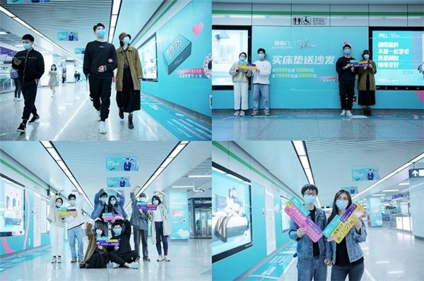 除了长春的核心展区之外,喜临门还将床上蜜月展搬进了地铁站及电梯里。杭州郑州的甜蜜地铁站引发网友纷纷拍照打卡热议,100座城市70万部电梯甜蜜到离家的最后10米,一组组生活化场景,一对对甜蜜的cp……消费者在感受喜临门甜蜜暴击的同时,还顺势将#床上百态大赏#推上了微博热搜榜。所谓“爱对了人每天都是蜜月期”,其背后是折射出来的是当代年轻人全新的蜜月观念。