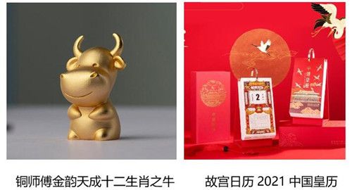 铜师傅《金韵天成十二生肖》牛摆件,采用24K真金鎏镀,让整个房间“金光闪闪”,未来牛气冲天;紫禁城600周年庆生好礼——故宫日历 2021中国皇历,古韵盎然却又不失流行底色,匠心打造传统与现代的完美结合体,为年轻人带来生活仪式感;P.F.Candle Co手工复古香薰蜡烛,清冷淡雅中透露着生活的小情调。