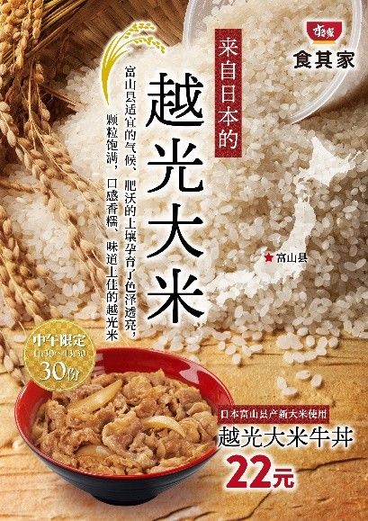 疫情也许阻碍了你前往日本品尝美食的步伐,但绝对阻碍不了你对美食品质的要求。人不可一日不食,米饭更是三餐中不可缺少的主食。米饭的品质与口感直接影响了这顿饭是不是有质量。哪怕是匆忙午间,也不应该应付了事。快与品质,在食其家就可以兼得。食其家推出期间限定正宗日本富山县产的越光大米牛丼,不出国门,即可品尝到日本米饭的软香甜糯!