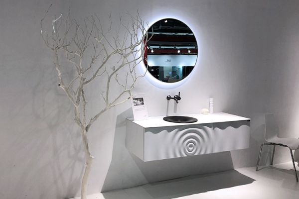 纯白色的空间,加上极具艺术感气息的白色树木枝垭,C13HM05朵纳展位布置得极简而大气,一眼望去,白色的涟漪在灯光的照影下,光亮与阴影相互交织,显得立体感与设计感十足,吸引了许多设计师驻足观赏。