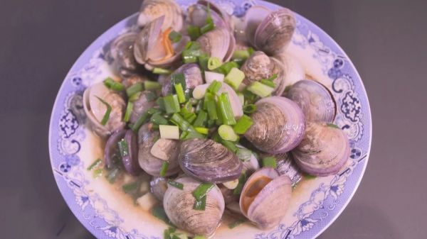 李姐热情好客,亲自出马炒菜,炒起菜来身手矫健,还能颠锅呢,一盘爆炒花蛤出锅,撒上香葱碎,全程行云流水,俨然一个大厨。