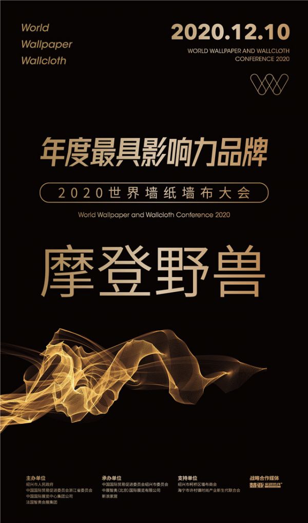12月10日,由绍兴市人民政府、中国国际贸易促进委员会浙江省委员会,中国国际展览中心集团公司、法国智奥会展集团主办,中国国际贸易促进委员会绍兴市委员会、中展智奥(北京)国际展览有限公司、新浪家居承办,绍兴市柯桥区墙布商会作为支持单位协办的“2020世界墙纸墙布大会”在绍兴柯桥鉴湖大酒店盛大举办。摩登野兽致力于打造墙布界新时尚,在大众墙布品牌间独辟蹊径,开创“时髦艺术家”时代,此次大会中顺利荣获“2020世界墙纸墙布大会年度最具影响力品牌奖”。