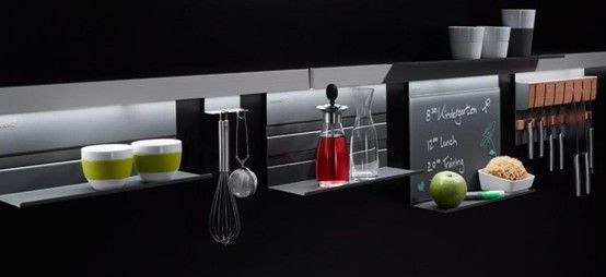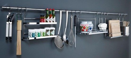NEXTi的厨房货架可以被挂在横杆上或者夹在上面。货架共有三种高度与两种宽度可供选择。