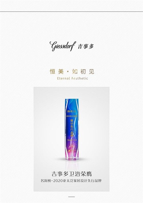 如今消费者不仅注重产品时尚感、设计感,还追求健康、多元等方面,吉事多卫浴作为精品卫厨品牌,凭借多年精湛技术的积累与考究工艺的沉淀,把立足消费者的初心转化为创造力,注重产品设计与研发创新,为时尚设计师及高端消费者提供品质与美感兼容的卫浴新体验。