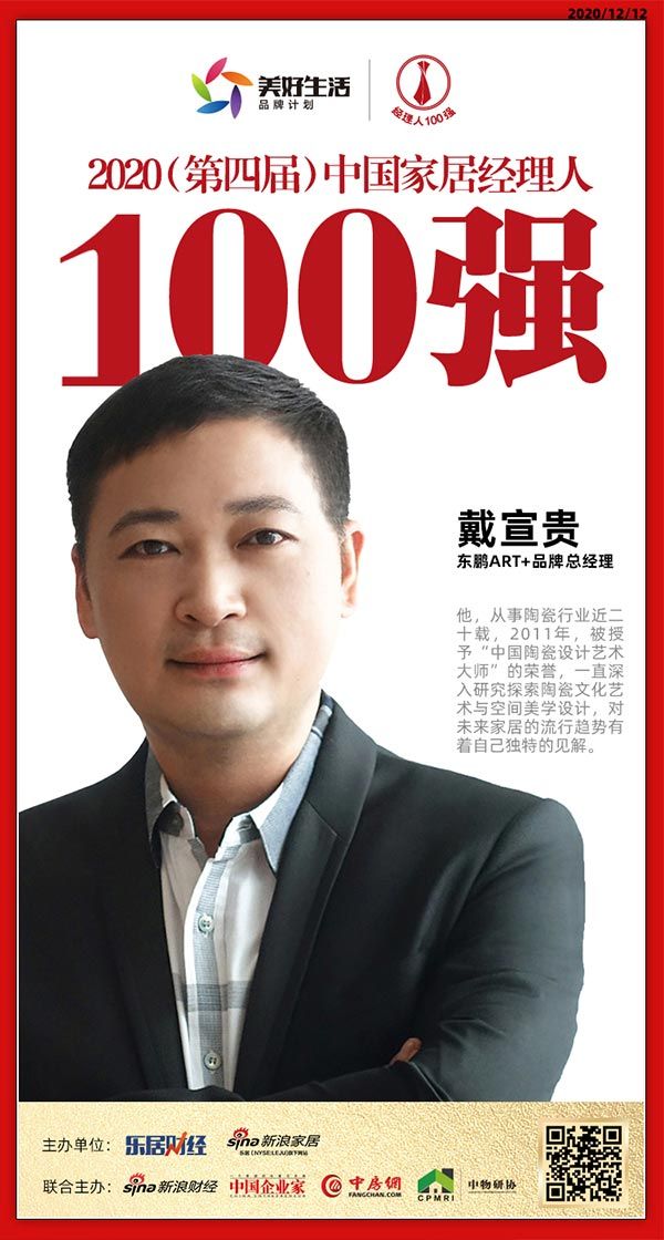 快讯:东鹏ART+瓷砖戴宣贵荣获2020中国家居品牌经理人100强