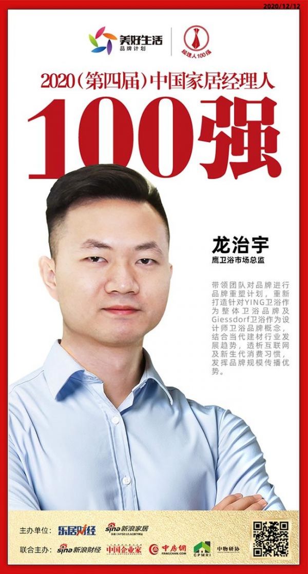 快讯:鹰卫浴市场总监龙治宇荣获2020中国家居品牌经理人100强