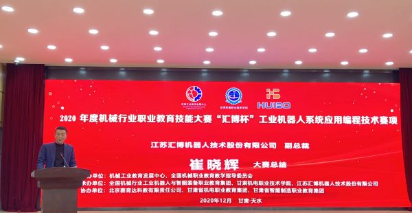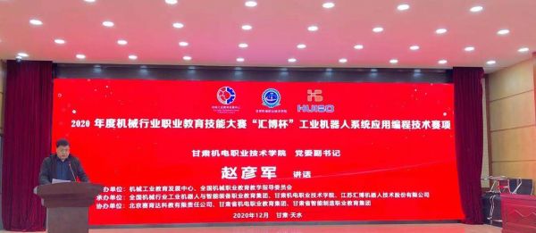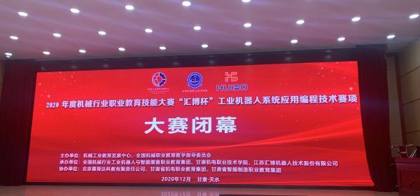 2020年度机械行业职业教育技能大赛“汇博杯”工业机器人系统应用编程技术赛项在甘肃天水成功举办,12月13日,上午9点在甘肃机电职业技术学院举行大赛闭幕式。