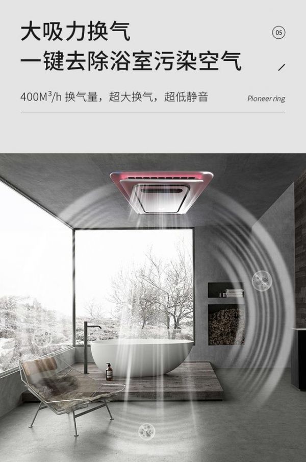 400M3 h换气量大吸力换气,给浴室一片清新,换气60分钟后可以自动关闭,给家人安全保护。
