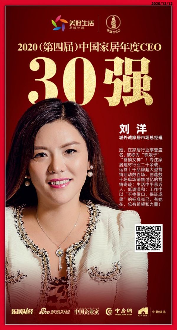 对于荣获“中国家居年度CEO30强”的称号,刘洋始终强调自己受之有愧,她表示,城外诚家居广场本身作为卖场其本质就是为商户提供一个平台,作为卖场方要服务于商户,为品牌搭建最好的产品展示中心和营销平台,另外一方面就是对接消费者,卖场的宗旨是为消费者提供一个最佳的消费体验和服务载体。刘洋提到,城外诚在这些方面一直在不断努力,但自己总觉得还不够好,还可以更好。对于行业和消费者的信任,刘洋也表示,城外诚也将不断努力,不辜负这些信任,为商户和消费者提供更加完善的大平台。