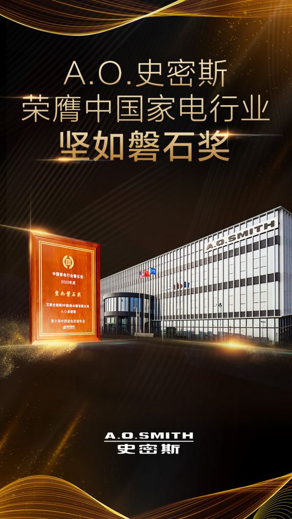 在年会颁奖盛典上,A.O.史密斯赢得重磅荣誉“坚如磐石奖”。主办方认为,2020年疫情打乱了行业发展节奏,但在消费增长放缓的大环境中,家电领军企业A.O.史密斯的创新与发展进程却依旧坚如磐石。A.O.史密斯坚持创新实践和自我超越,积极进取,精准把握市场变化与消费趋势,全面布局实施数字化创新战略,打造“艾锦囊”、“艾经销”等数字化工具,实现A.O.史密斯公司业务的逆势增长,加速数字化向传统产业的渗透,促进全新的产业发展变革,成为家电行业创新发展的成功典范。