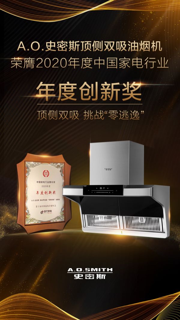 A.O.史密斯始终致力于打造品质生活,专注于攻克行业难题,给消费者创造优质的创新精品。历经潜心研发,通过持续不断的技术创新,A.O.史密斯两款创新产品:“1级静音”零冷水燃气热水器、 “顶侧双吸”挑战零逃逸油烟机,从众多参选产品中脱颖而出,最终获得 “年度创新”大奖。