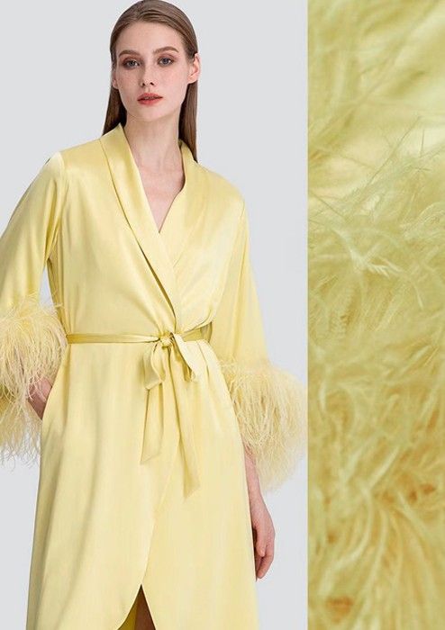Diva系列鸵鸟毛睡袍,飘逸长睡袍设计、自由舒展度的女性气质。飘逸下摆散发自信洒脱的自我光芒,袖口鸵鸟毛灵动演绎随性浪漫的姿态。