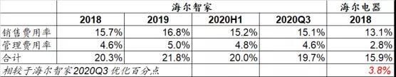 第一,渠道价值持续释放。借助本次整合交易,海尔智家将全面整合KA和自有渠道,同时,大力推进渠道数字化转型,提高营销费用投放效率,推进统仓统配,提升终端销售的效率,并反哺提升制造端效率。据财经早餐预测,私有化后的海尔智家销售费用和管理费用预计将进一步改善,短期有望恢复海尔电器2018年水平,即海尔智家2020Q3费用率19.7%较海尔电器2018年的15.9%再优化3.8个百分点;长期有望恢复到行业2018年平均水平。