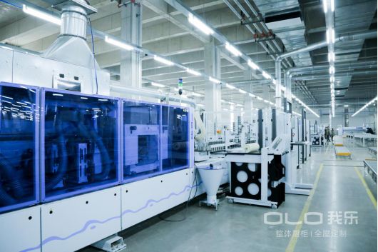 我乐家居投资建造了两个生产基地,分别位于江苏南京江宁和溧水,是集“信息化、智能化、高速化、自动化、立体化”五化为一体的全屋、厨柜生产基地,不仅能够实现生产效率最优化,还能够通过智能设备监控生产环节,确保产品质量。