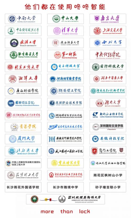 而咚咚智能作为智慧校园领域的“先行者”,一直致力于为全球用户提供智能、安全、便捷的智慧空间访问控制体验。经多年沉淀,已成功建成国内最大物联网门锁平台——中南大学学生公寓物联网门锁管理平台,支持接入物联网门锁13000+台。现已在中南大学、中山大学、南京大学、上海交大、国家关系学院、陕西师范、柳州职院、河南经贸等国内100多家知名院校使用,获得一致好评。