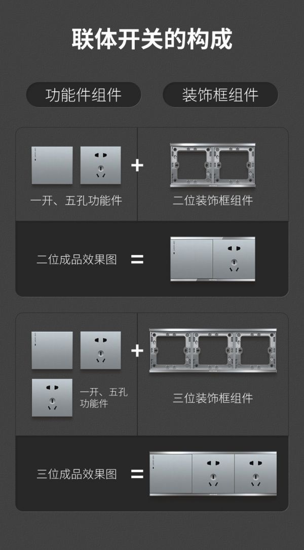 如果家里安装的是联体开关,更换起来会省心很多。只需要更换功能件,无需将开关插座整个拆下。