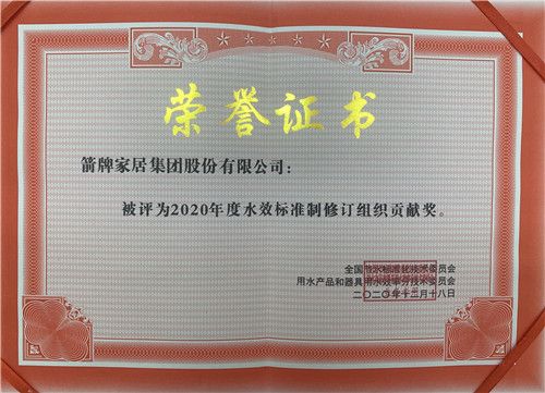 一个优秀的企业,不应该仅仅是产品和服务的提供者,还要时刻站在市场的风口,推动行业和社会的进步,这也是企业的使命所在。显然,在这个层面上,箭牌家居集团又树立了一个榜样,也正是因为在推动相关标准的制定和实施上的突出贡献,箭牌家居集团被授予了“中国标准创新贡献奖二等奖”及“2020年度水效标准制修订组织贡献奖”两项重磅荣誉。