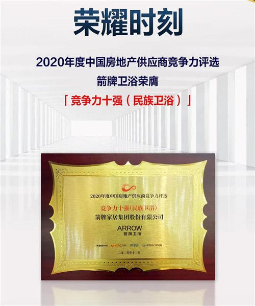 特别是在消费端,中国品牌正在被更多的消费者接受和选择。例如箭牌家居集团的产品已经被广泛应用于国内外标杆酒店及住宅,成为碧桂园、中国恒大、融创中国、中海地产、华润置地、金地集团等百强地产合作伙伴。在“2020年度中国房地产采购峰会暨标杆开发商与优秀供应商颁奖典”上,箭牌卫浴更是成功获得了“2020年度中国房地产供应商竞争力评选十强”荣誉,并位列民族卫浴类榜单第一。
