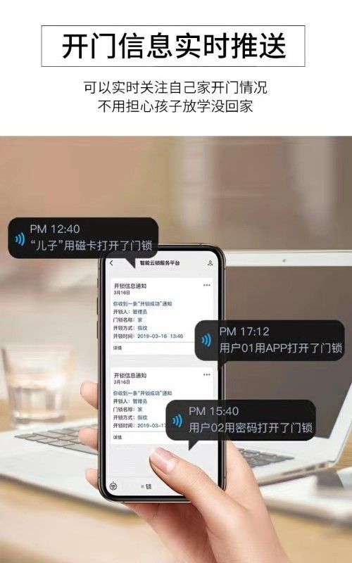 群佑智能锁采用半导体指纹采集器,体积小、识别率高,可容纳300枚指纹的录入,再配置铭光指纹头,可实现快速解锁的效果。另外,群佑智能锁可用WiFi直接链接,再通过优智云家远程APP一站式管理,不管身在何处,也能实时知晓家中动态,包括开锁记录、用户管理等等,随时了解更新信息。