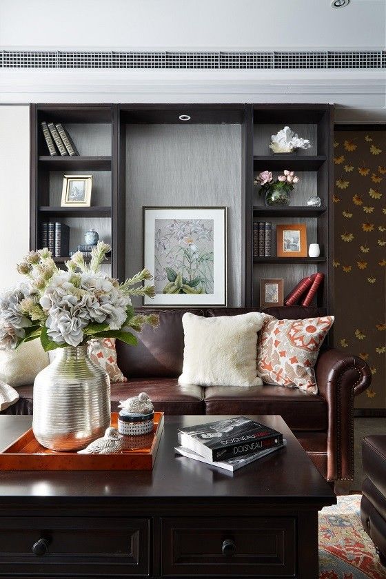 无论是独自一人还是亲朋欢聚于客厅时,咖啡桌就有了用武之地,茶水小食、书刊杂物,如此一来,很难保持平日桌面的利落感。而这位屋主却巧妙地利用收纳托盘将花瓶和摆件整理在一起,竟构建出一方美感。